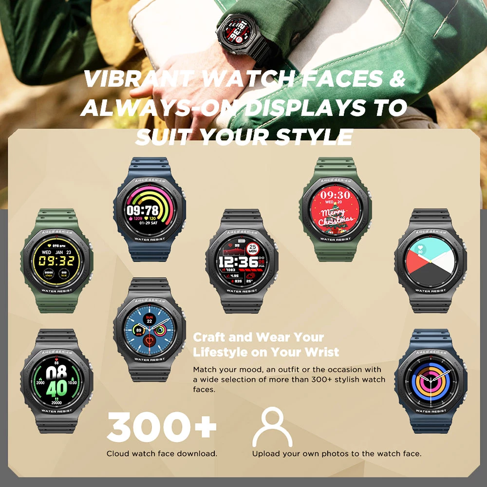 | Hardware Specification | Chip: Realtek 8762C Bluetooth Version: BT5.0 Water resistance: 50M System Requirement: Android and iOS Sensor: Heart-rate sensor, Proximity sensor, Accelerometer |